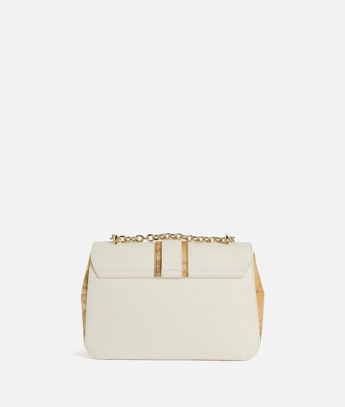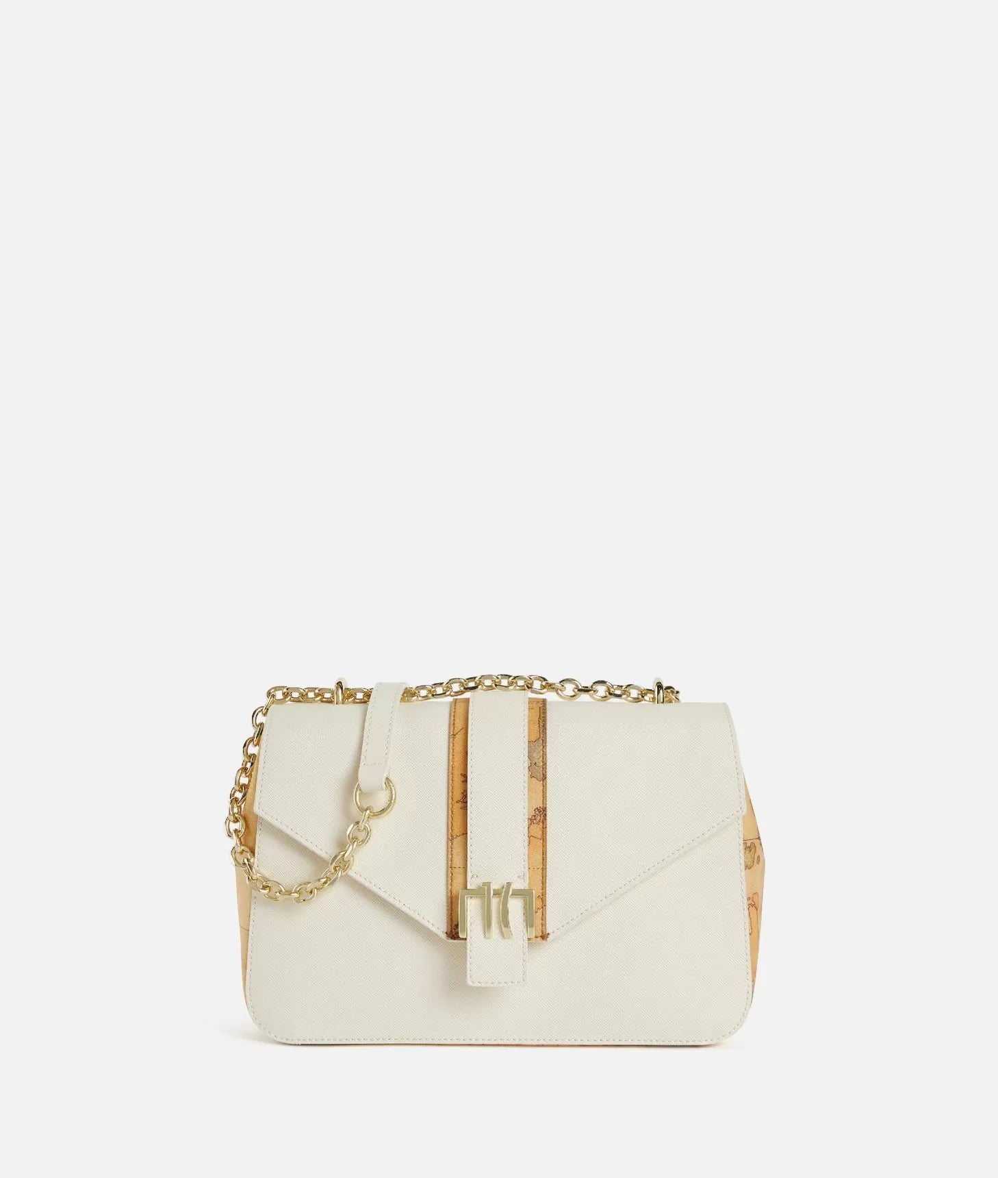 Alviero Martini borsa a tracolla con fianchi e sottoborsa in tessuto Geo Classic avorio