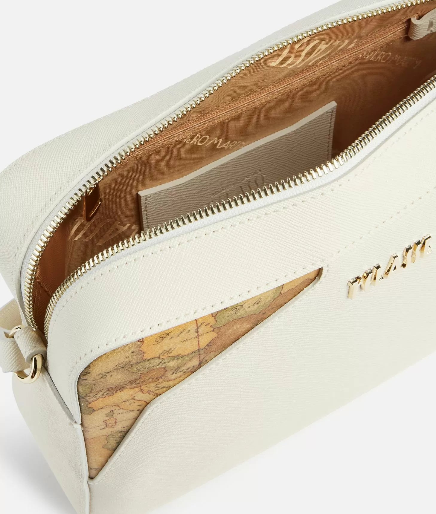 Alviero Martini borsa a tracolla media con inserti frontali sagomati in tessuto Geo Classic avorio