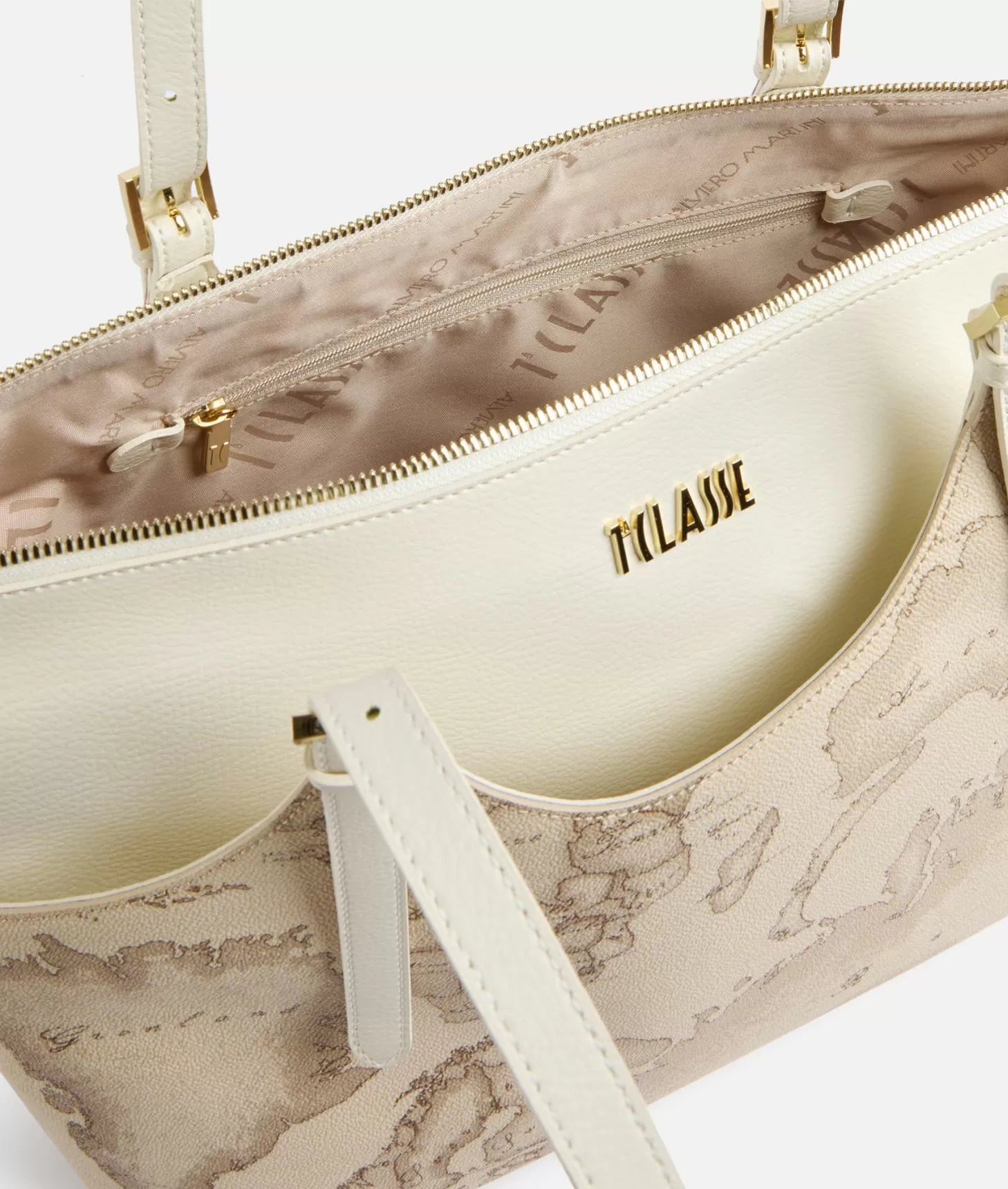 Composizione interna: interno sfoderato in tessuto effetto pelle granata fine con logo 1ᴬ Classe in oro chiaro Tracolla removibile: no regolabile